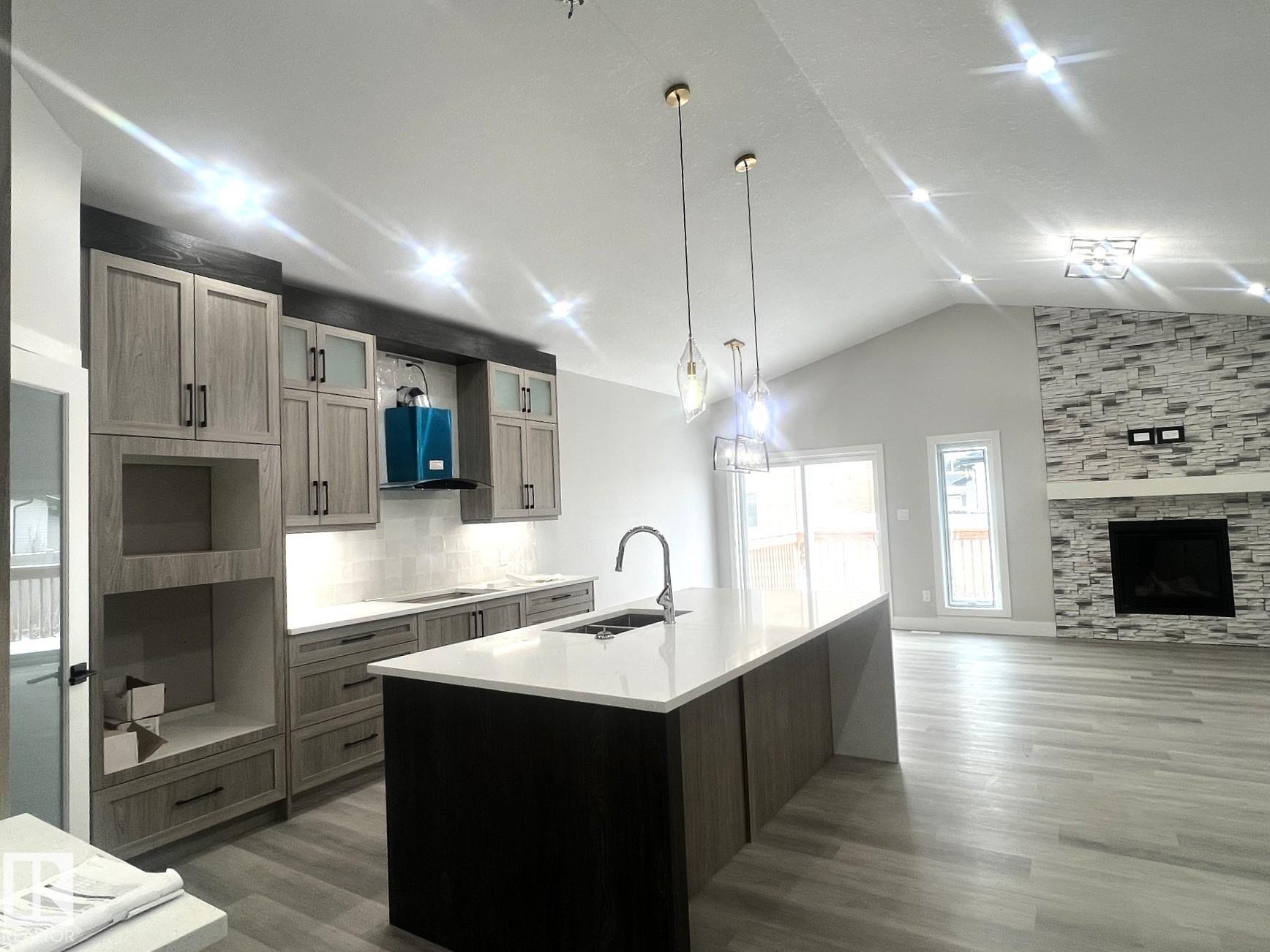 Your Dream Bungalow Under Construction! This stunning 1,284 sq. ft. modern home blends style, comfort, and functionality. The spacious layout boasts a vaulted front-to-back ceiling in the Great Room and a striking floor-to-ceiling stone gas fireplace. The chef-inspired kitchen features a functional island, corner pantry, and quartz countertops throughout. Enjoy the convenience of a huge main-floor laundry room. Flexible design offers two bedrooms or a bedroom plus den. The primary suite includes a walk-in closet and a 4-piece bath with a double shower and optional seat. Stylish vinyl plank flooring flows throughout. The oversized 22' x 23' double garage adds storage and parking space. Relax on the rear deck overlooking your sunny north-facing backyard. Show Home @ 558 Meadowview Dr. Ft Sask for Details. Some pictures are virtually cleaned up.
