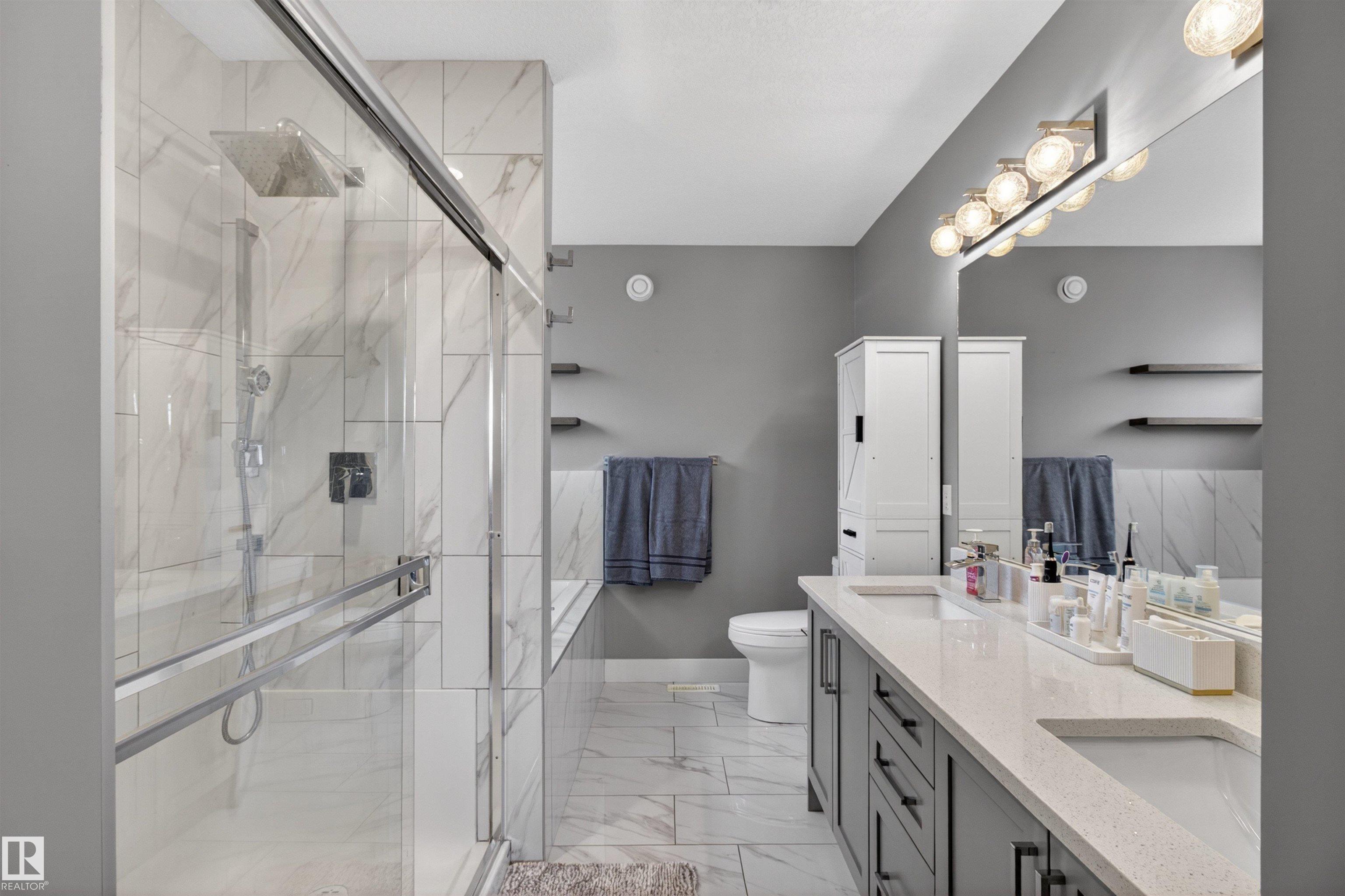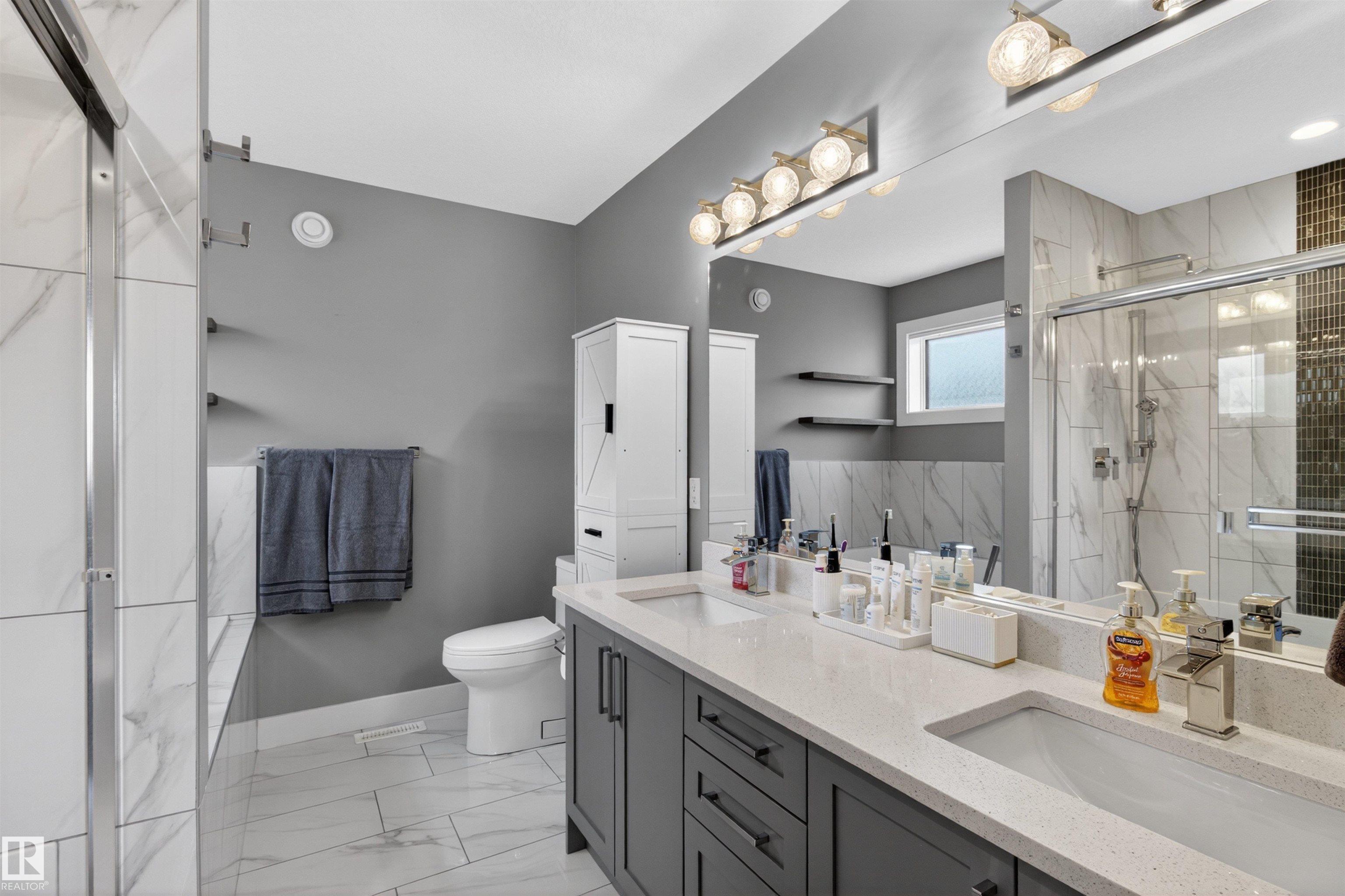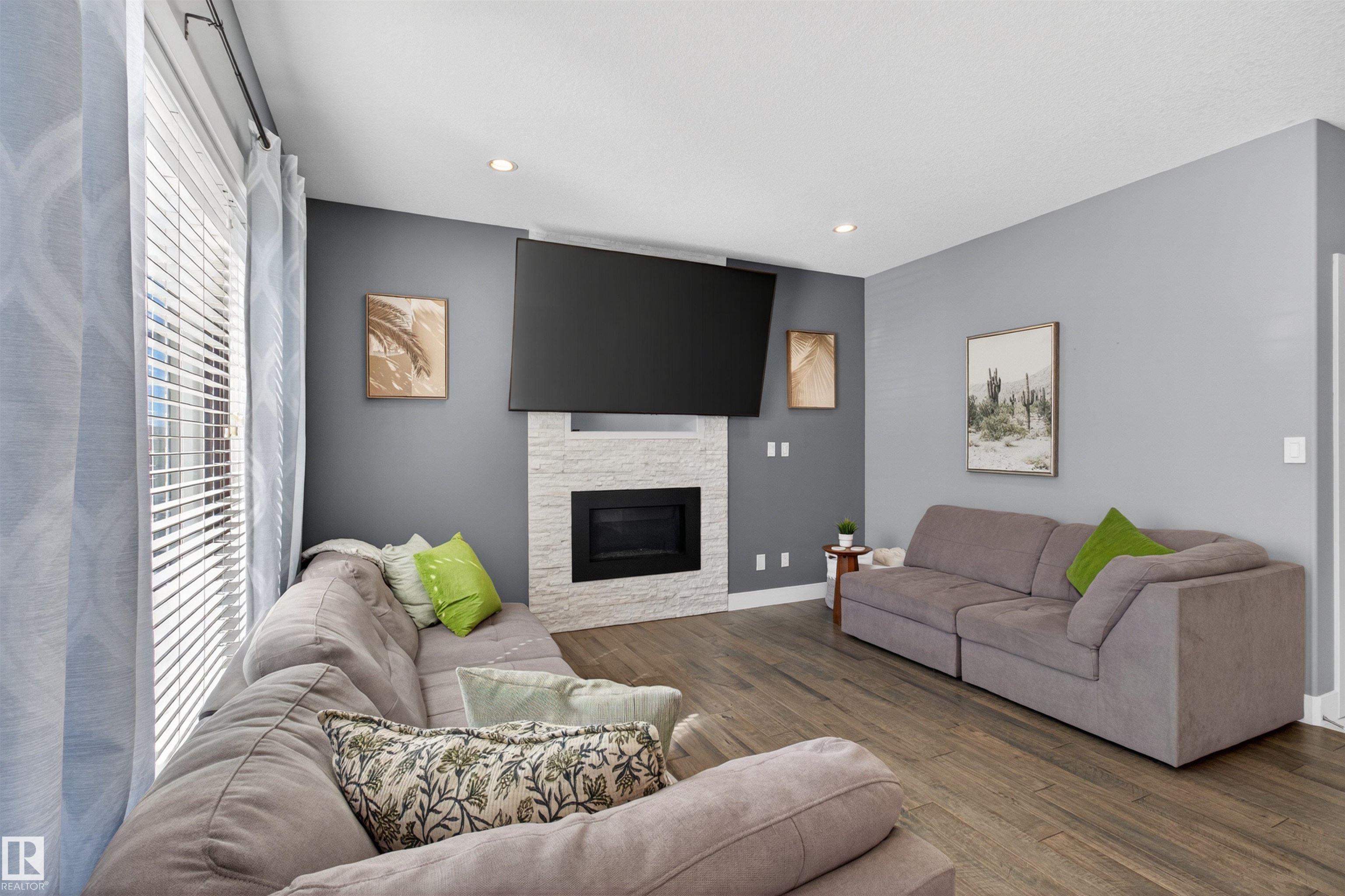 GORGEOUS FAMILY HOME! Prime location in the heart of South Fort Meadows in Fort Saskatchewan. Featuring an open concept with a grand entrance leading to the beautiful main floor with STUNNING KITCHEN! Quartz counter tops, stainless steel appliances, pantry and a large dining area. Spacious living room with cozy natural gas fireplace. Large back entrance with custom shelving and a 2 piece powder room complete the main level. Upstairs are 3 generous bedrooms. The Primary Bedroom features a luxurious 5-piece ensuite with soaker tub, double sinks, and double wide shower plus a walk-in closet. Convenient upstairs laundry & a full 4-piece bathroom. Gorgeous SOUTH-FACING BACKYARD with huge composite deck to enjoy! An OVERSIZED DOUBLE ATTACHED GARAGE 22.5' x 25' (interior measured). Upgrades include: CENTRAL AIR-CONDITIONING, quartz countertops throughout, upgraded carpet and hardwood, upgraded appliances, and composite decking. See it and you will love it! Visit REALTOR© website for information.