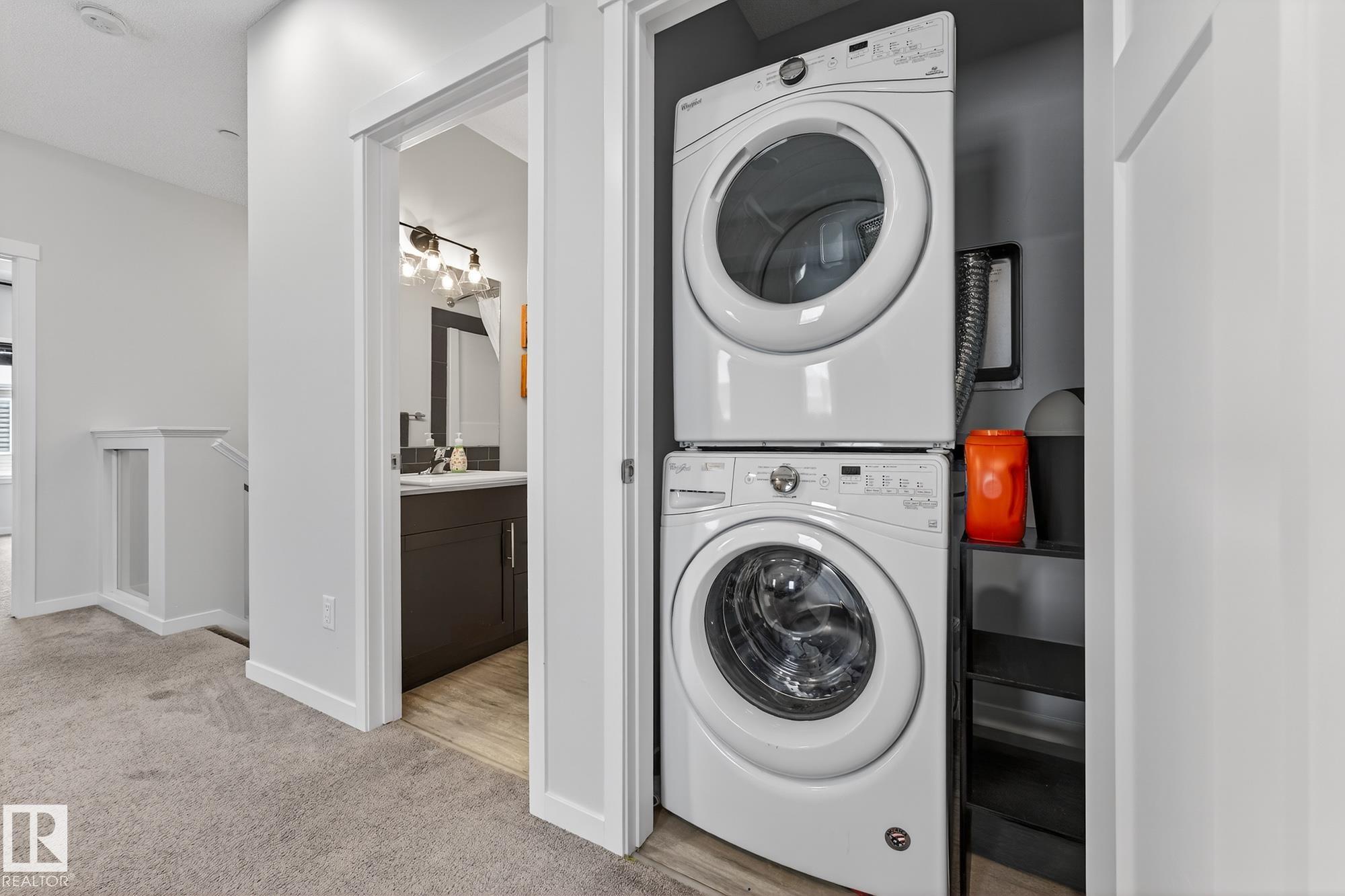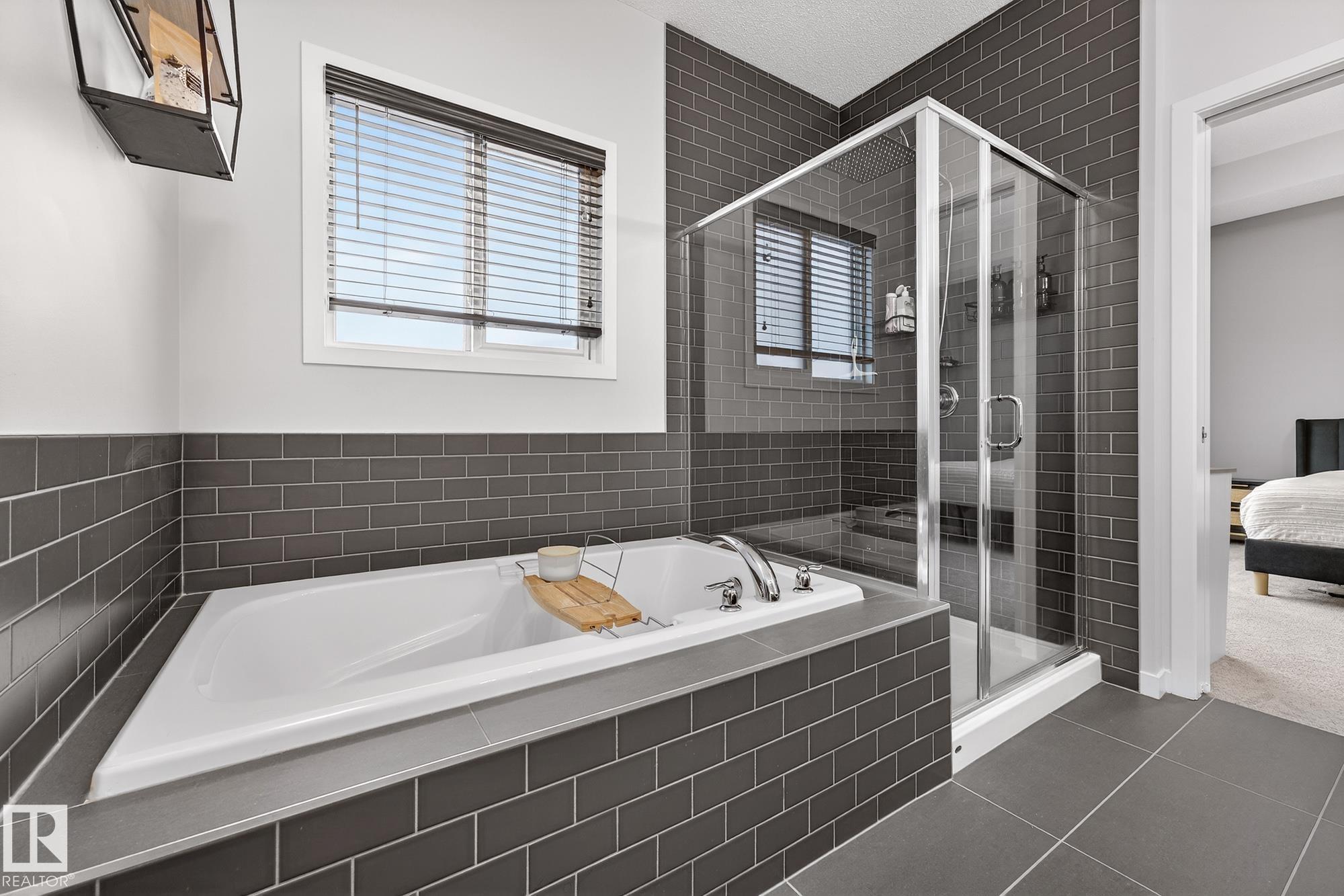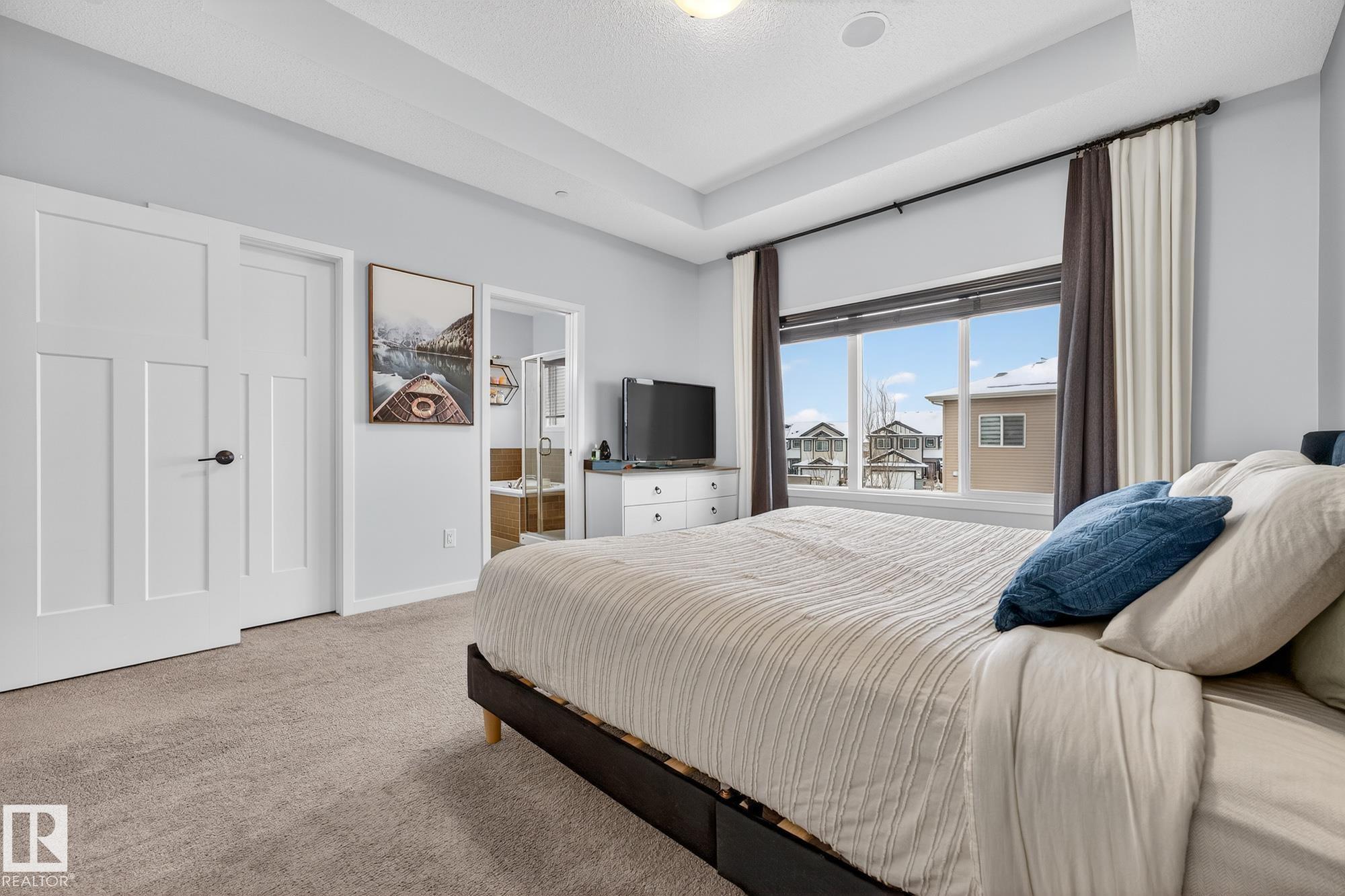 Step into style and comfort in this beautifully upgraded 1800sqft home! The main floor impresses with 9' ceilings, LVP flooring throughout, and a warm, inviting great room featuring a gas fireplace and custom feature wall. The designer kitchen steals the show with ceiling-height cabinets, glass accents, quartz countertops, full-height tile backsplash, a large island, Silgranit sink, and a spacious corner pantry. The bright dining nook opens directly to the deck for easy indoor-outdoor living. Upstairs, the bonus room with coffered ceiling is perfect for movie nights or family hangouts. The primary suite feels like a private retreat with its walk-in closet and spa-inspired 5-piece ensuite complete with double sinks, glass-enclosed shower, and luxurious soaker tub. Two additional bedrooms and convenient upstairs laundry complete the level. With upgraded appliances, built in speakers, blinds, drapes, A/C & in floor heat in garage already included, this home delivers comfort, style, and value from day one!!!!