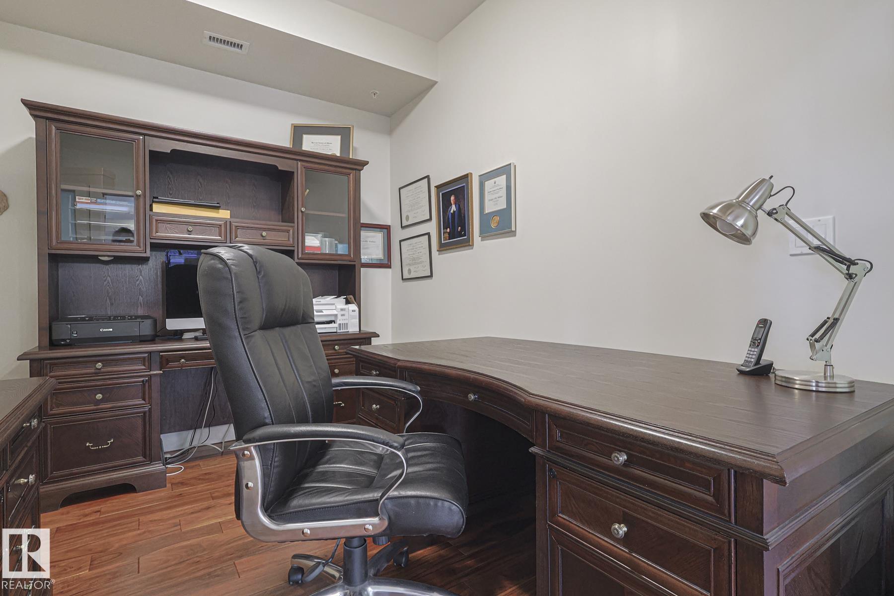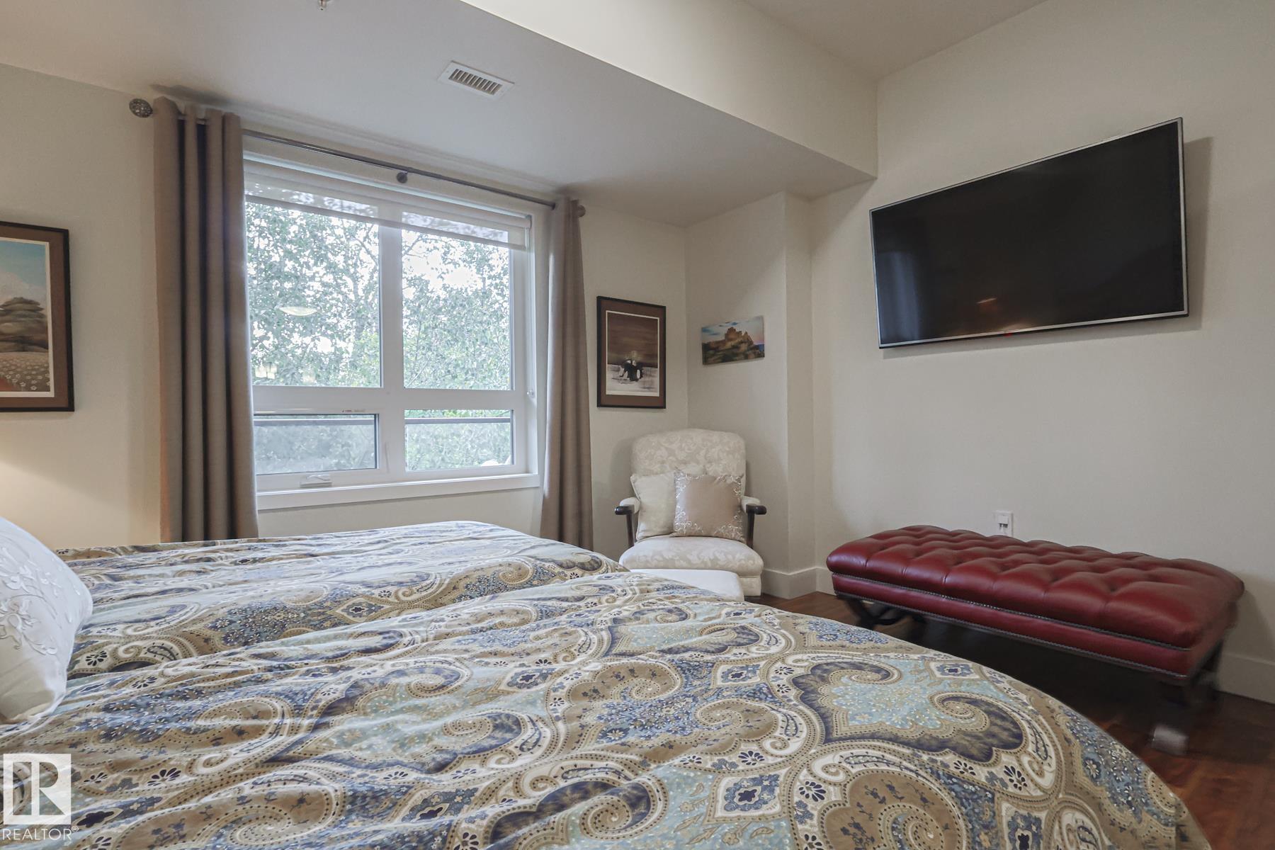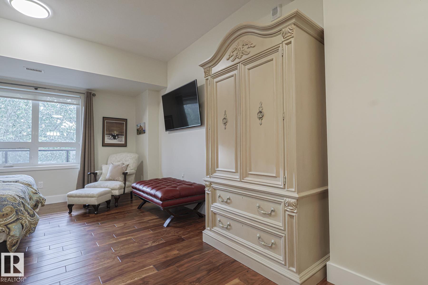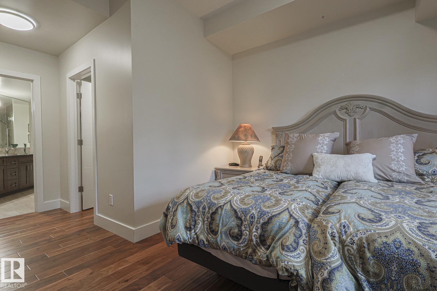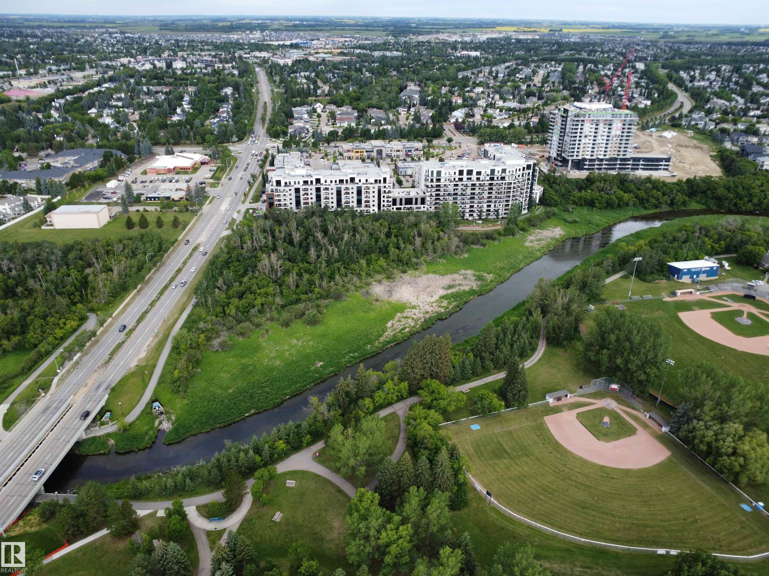 Live in St. Albert's marque river valley development, this gorgeous 1732sf unit,w/ 2 bed, 2 bath+DEN. Has all the upgrades including, granite counter tops, amazing cherry wood floors, beautiful maple cabinetry, back to back fireplaces, a chef's kitchen w/stainless steel appliances and a gas cooktop/built -in oven and microwave, a spa-like primary retreat w/ensuite and walk-in closet. Relax on you spacious balcony, enjoying the natural beauty of the river valley w/privacy provided by large trees near the quiet pathway. Included with this unit is the DOUBLE GARAGE in the heated parkade, on the same level as the unit just meters away. This property is great for entertaining with family and friends or enjoy one of the nice restaurants in the complex. Other amenities include fitness facility, rooftop patio, event room and guest suite. A luxurious place to call home. Original owner, meticulously maintained. SW Corner Unit with lots of natural light and beautiful sunsets.