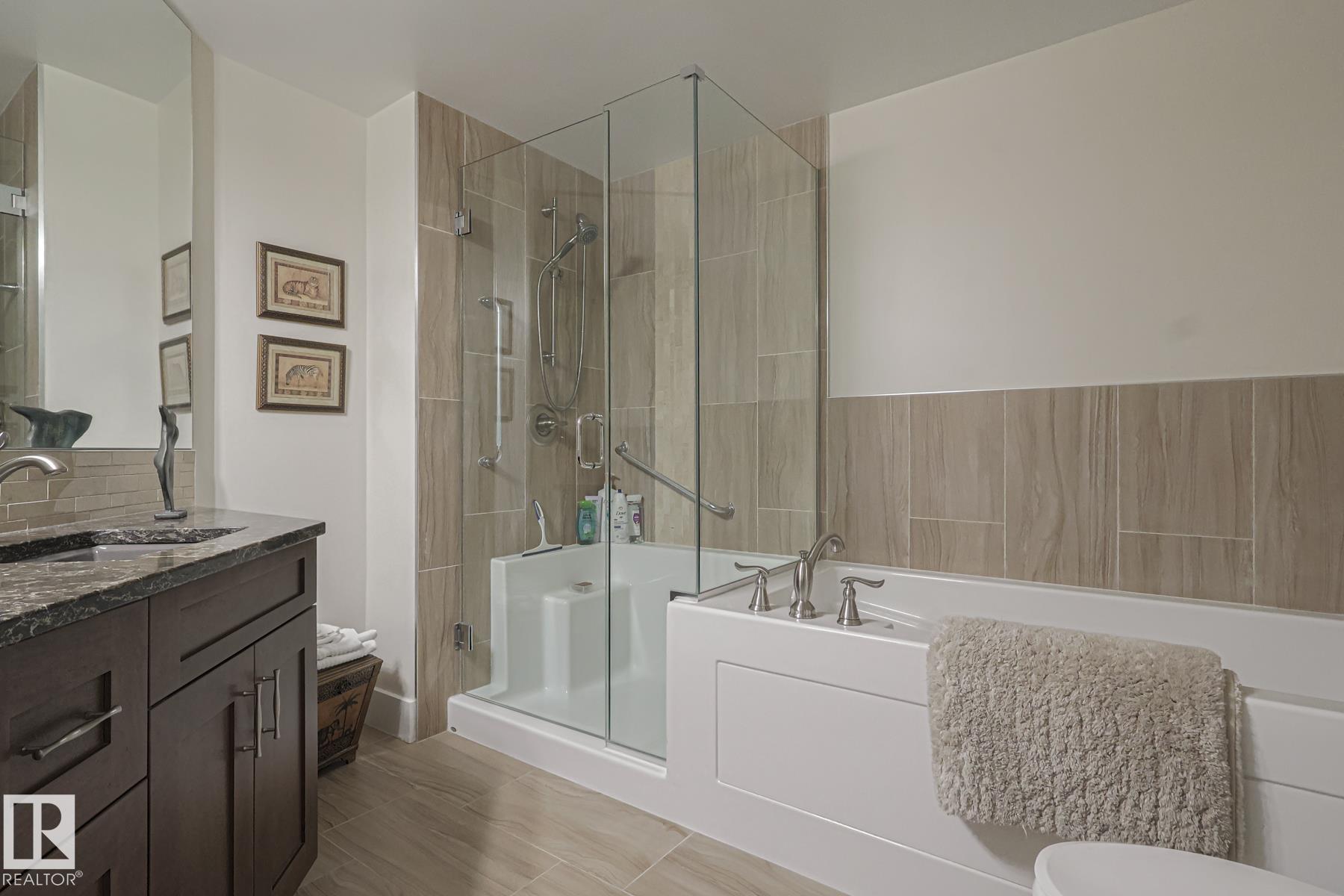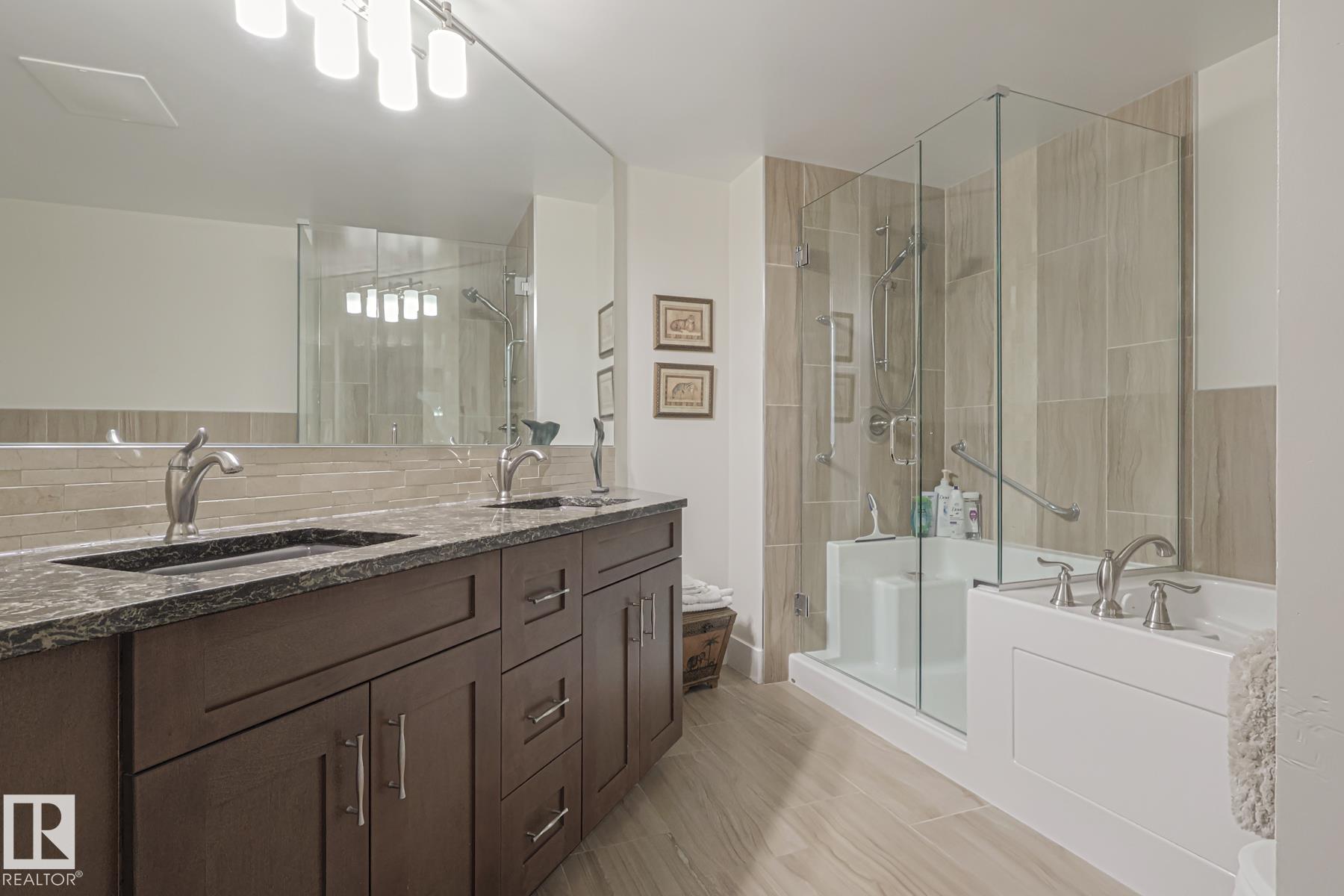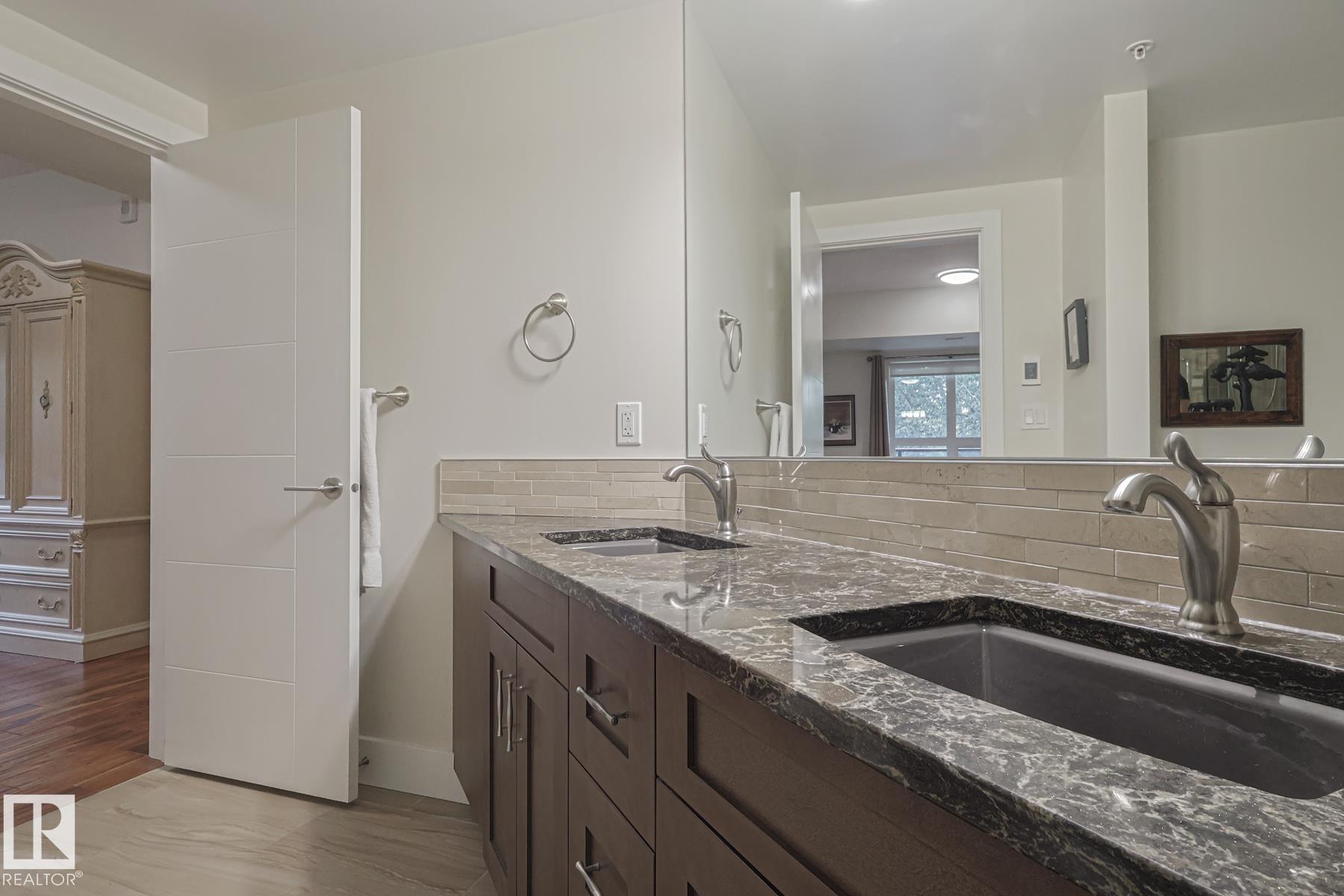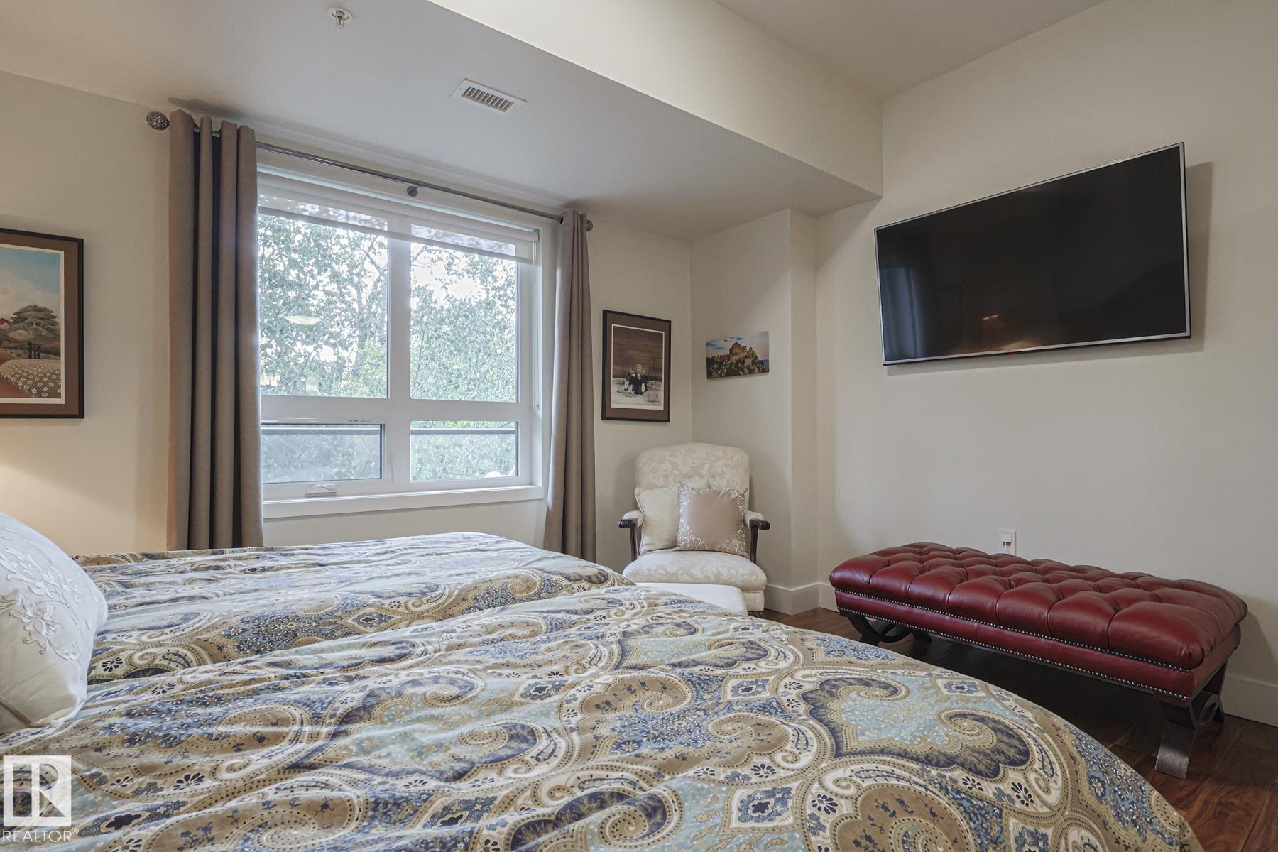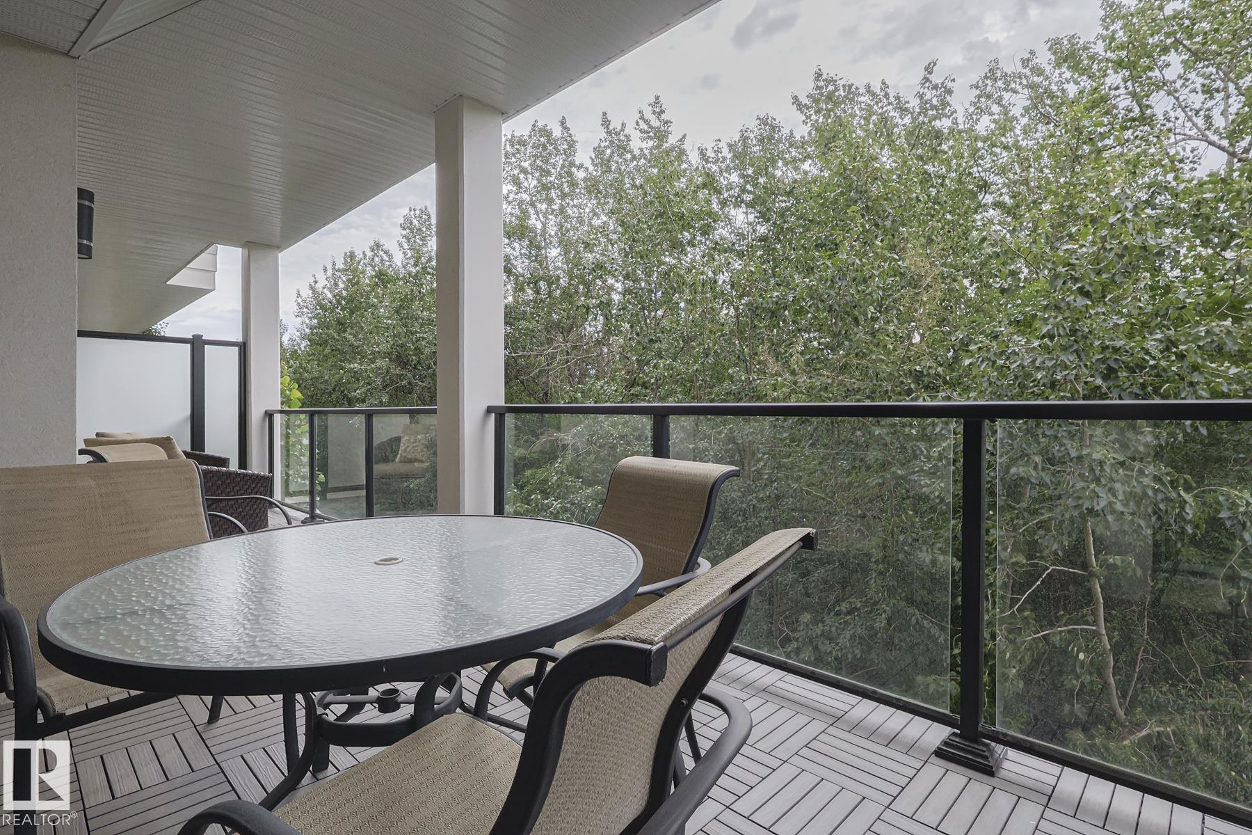 Live in St. Albert's marque river valley development, this gorgeous 1732sf unit,w/ 2 bed, 2 bath+DEN. Has all the upgrades including, granite counter tops, amazing cherry wood floors, beautiful maple cabinetry, back to back fireplaces, a chef's kitchen w/stainless steel appliances and a gas cooktop/built -in oven and microwave, a spa-like primary retreat w/ensuite and walk-in closet. Relax on you spacious balcony, enjoying the natural beauty of the river valley w/privacy provided by large trees near the quiet pathway. Included with this unit is the DOUBLE GARAGE in the heated parkade, on the same level as the unit just meters away. This property is great for entertaining with family and friends or enjoy one of the nice restaurants in the complex. Other amenities include fitness facility, rooftop patio, event room and guest suite. A luxurious place to call home. Original owner, meticulously maintained. SW Corner Unit with lots of natural light and beautiful sunsets.